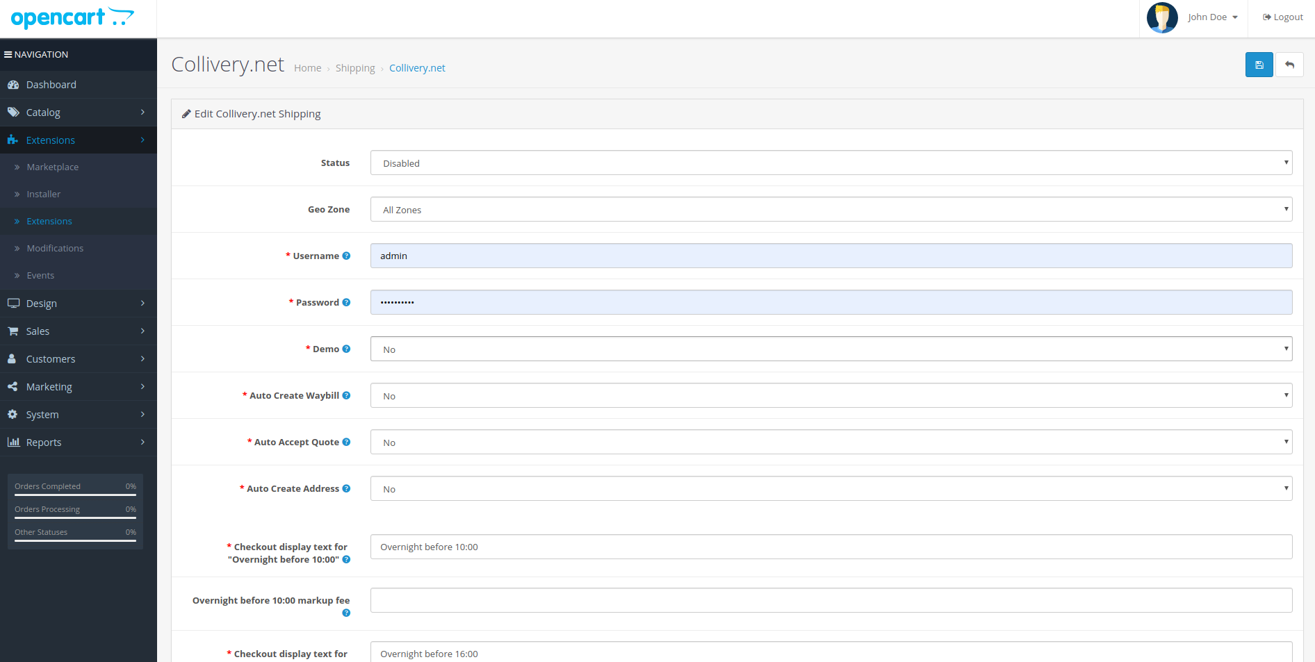 This plugin gives your OpenCart store the ability to get prices from Collivery.net based on the dimensions and weight of the products added to your client’s cart. After the client paid, the plugin will send the details of the Collivery through to us, or allow you to do so manually in your backend, also allowing you to modify the particulars of the delivery before sending the delivery request to Collivery.net